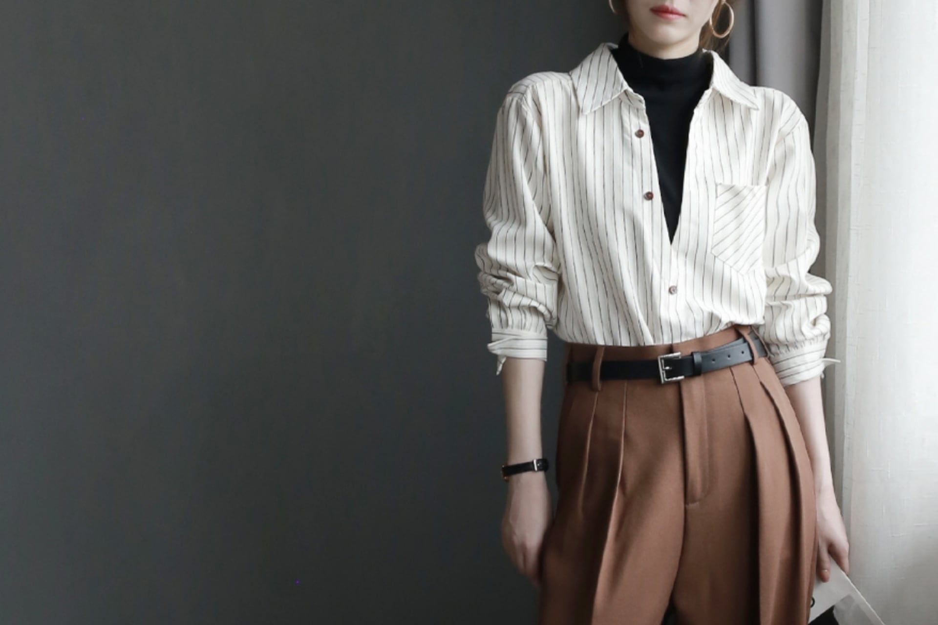 ストライプ柄 フルレングス ワイドパンツ 10035