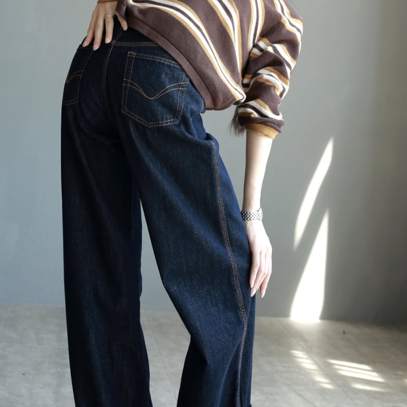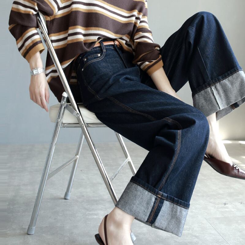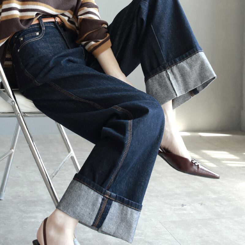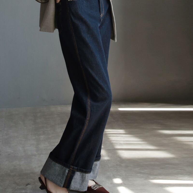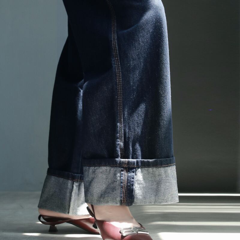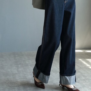 ロールアップ ワイド ストレート デニムパンツ 30006