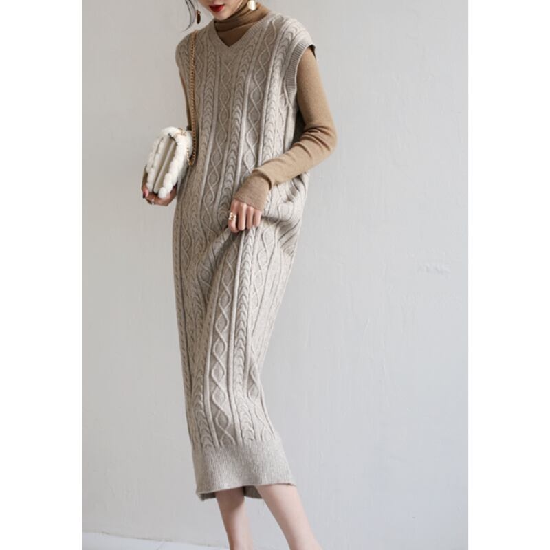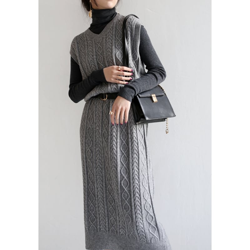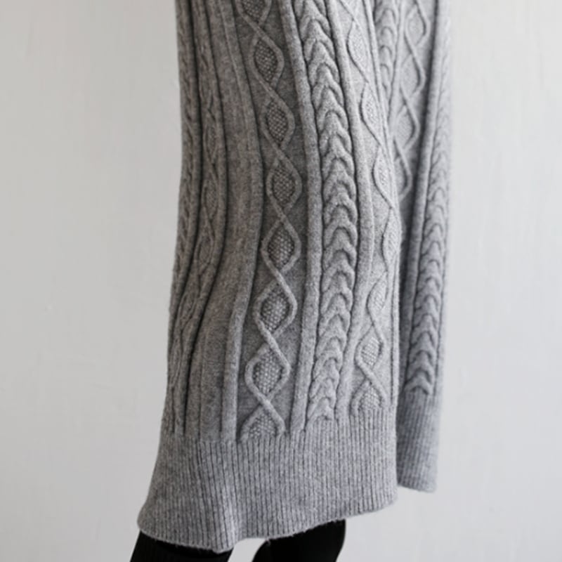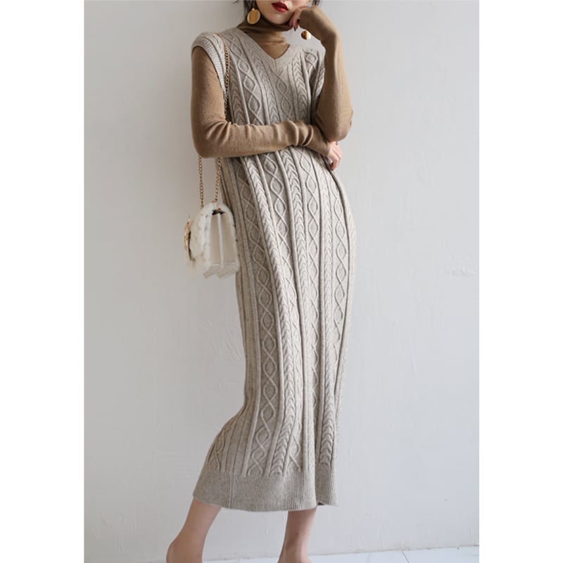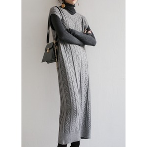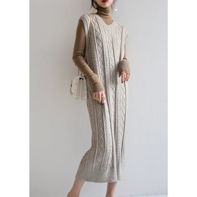 暖かみのあるケーブル編みが魅力的なニットワンピース。