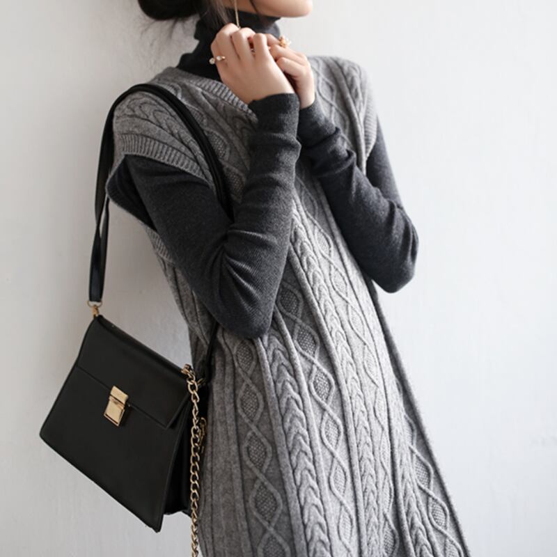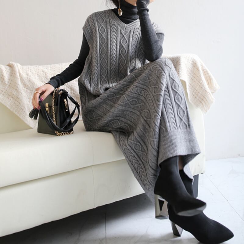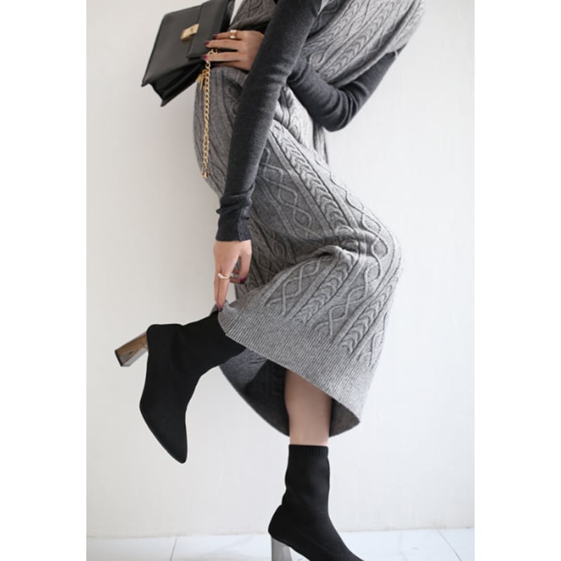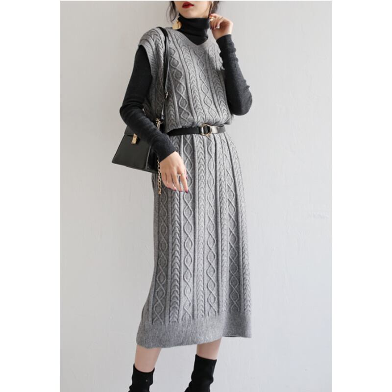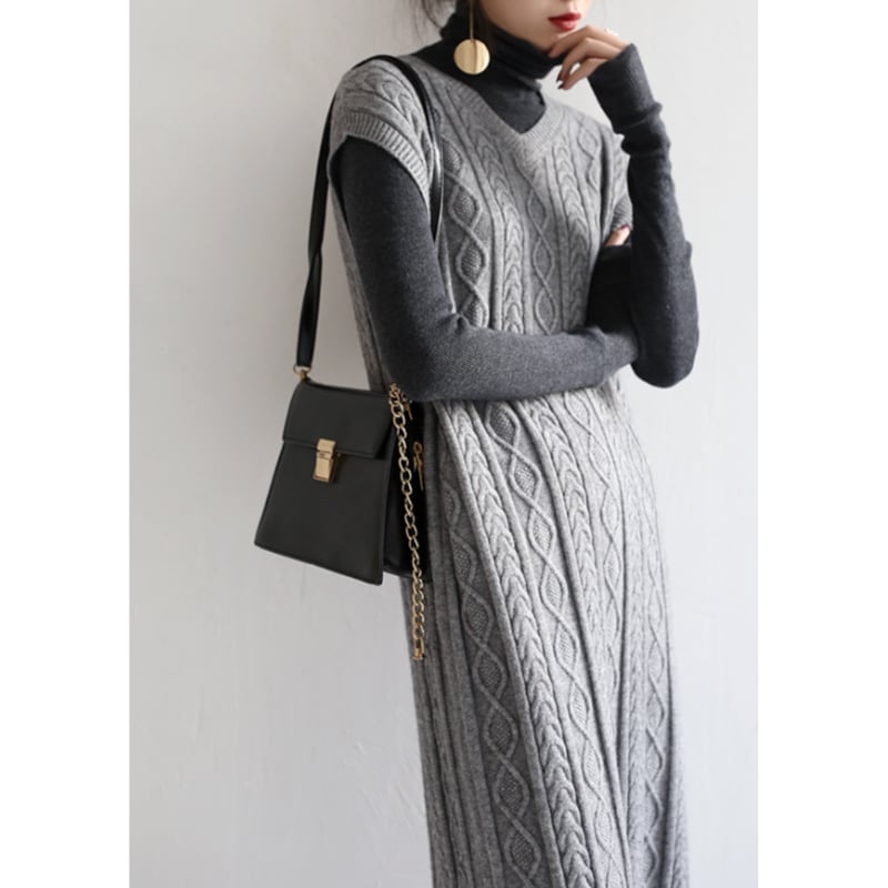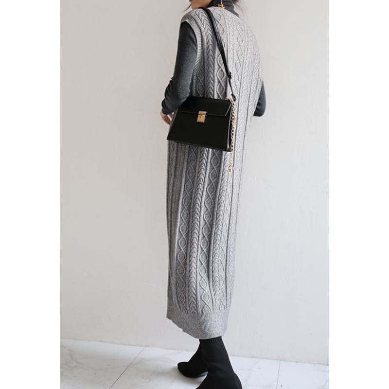 暖かみのあるケーブル編みが魅力的なニットワンピース。