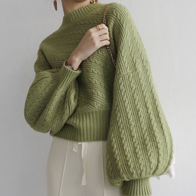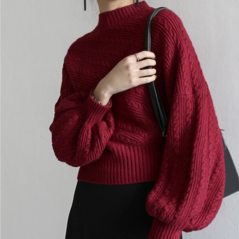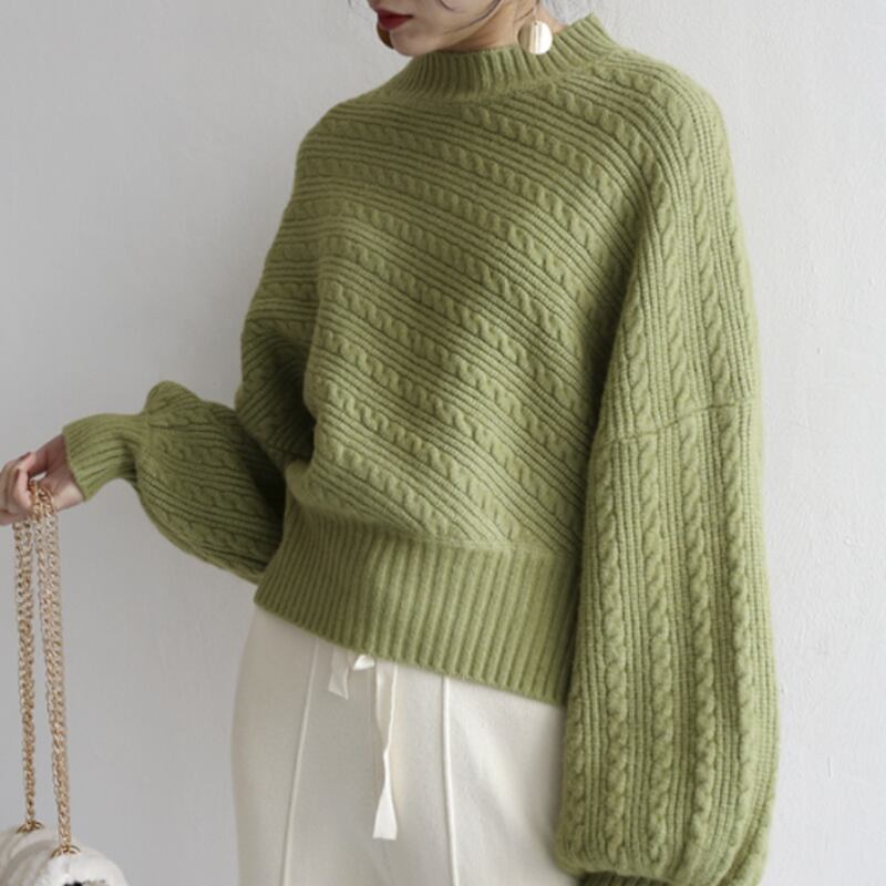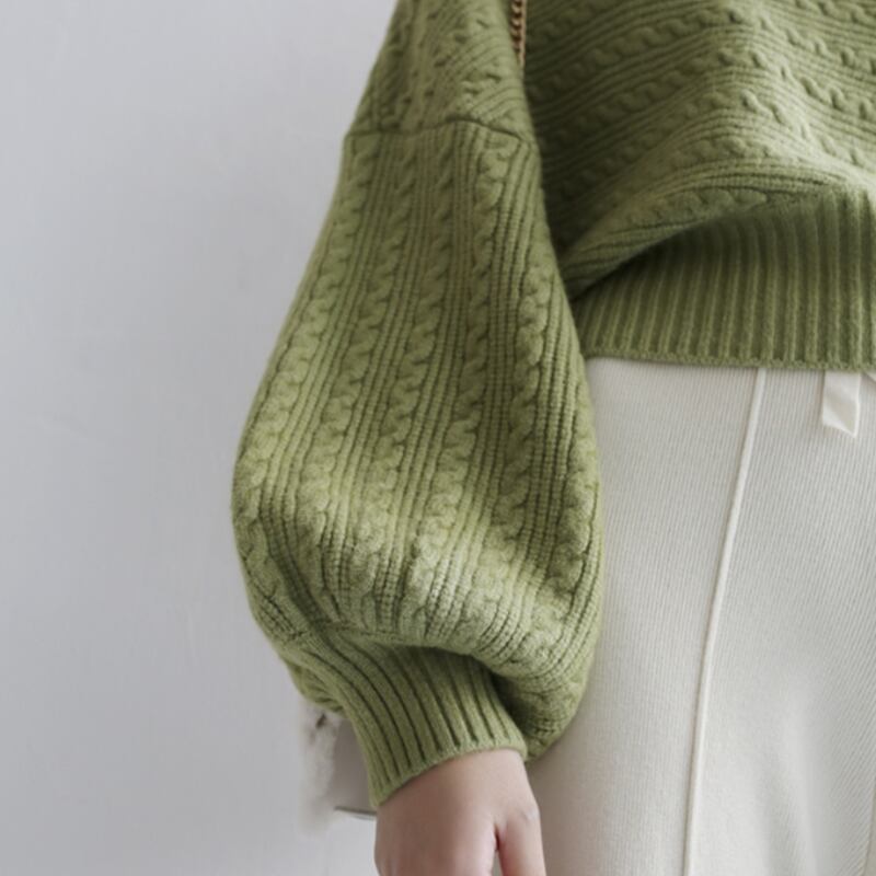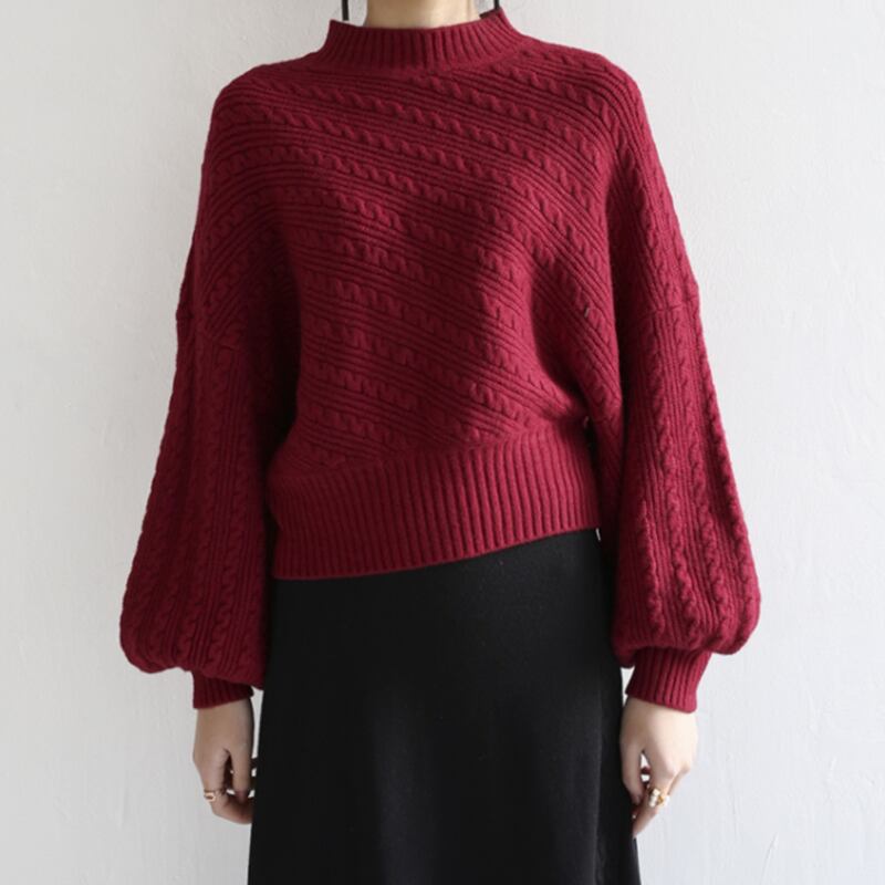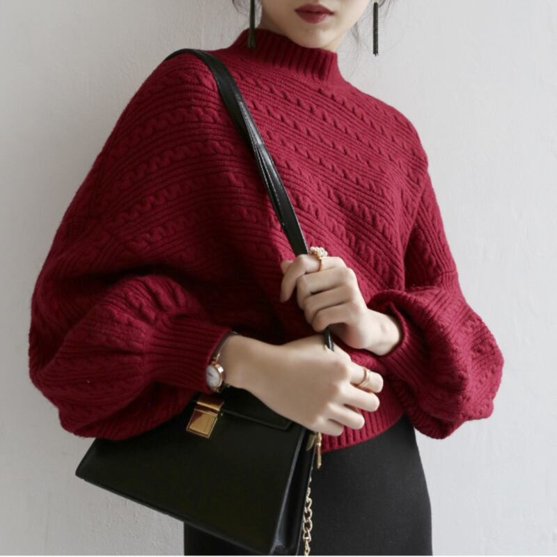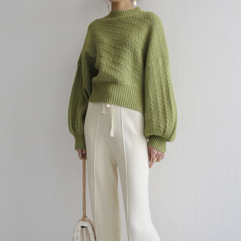 ボリュームのあるスリーブが印象的なニットプルオーバー。