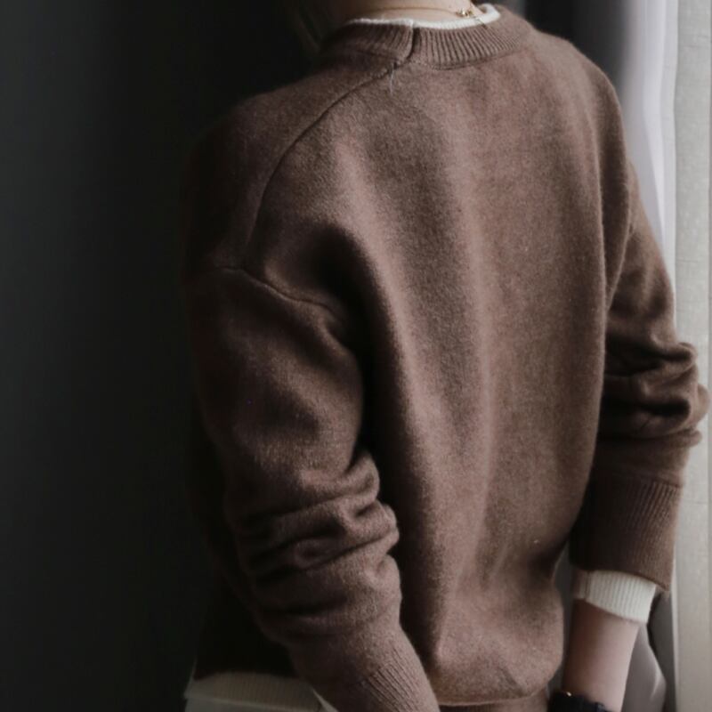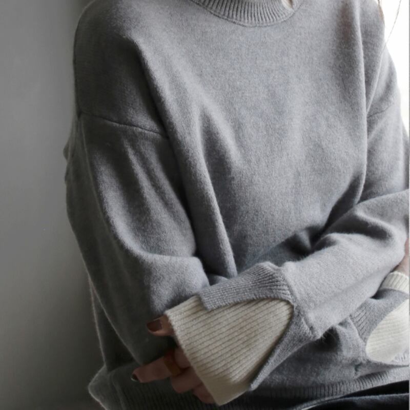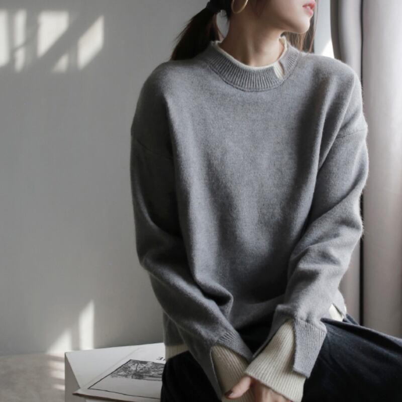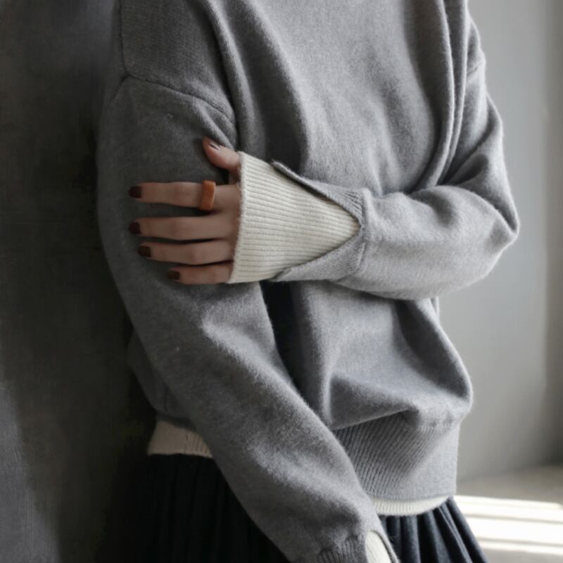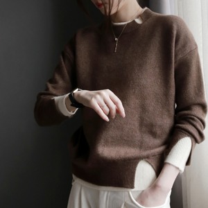 サイドスリットが特徴的な長袖ニットプルオーバー。