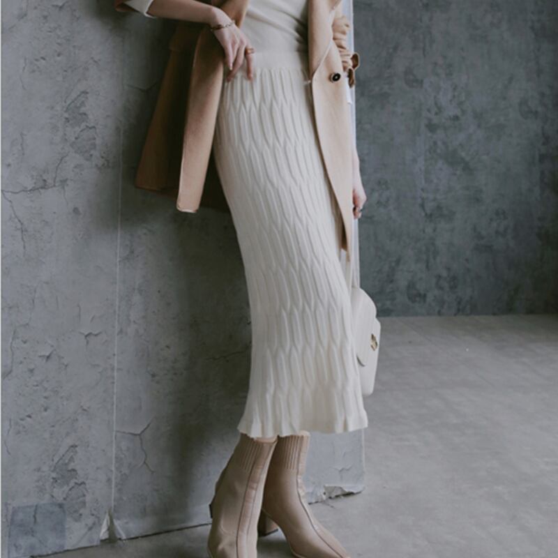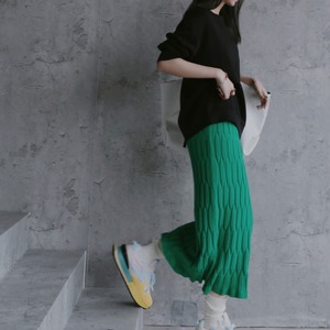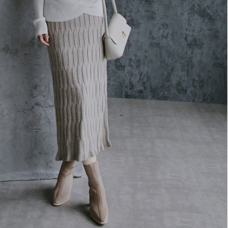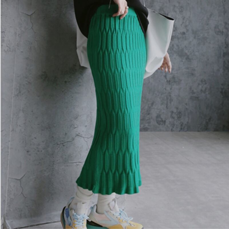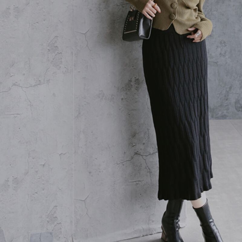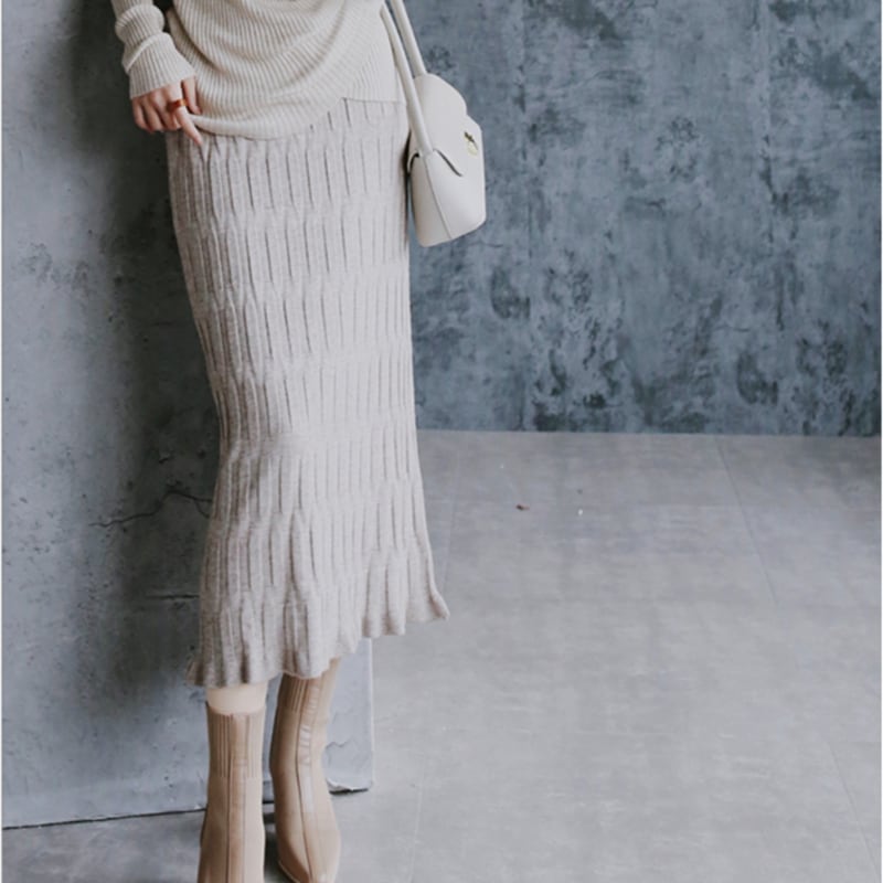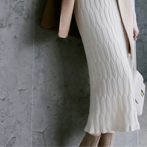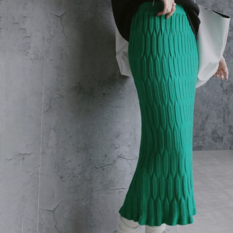 全体にあしらわれた特徴的な編地が目を惹くニットスカート。