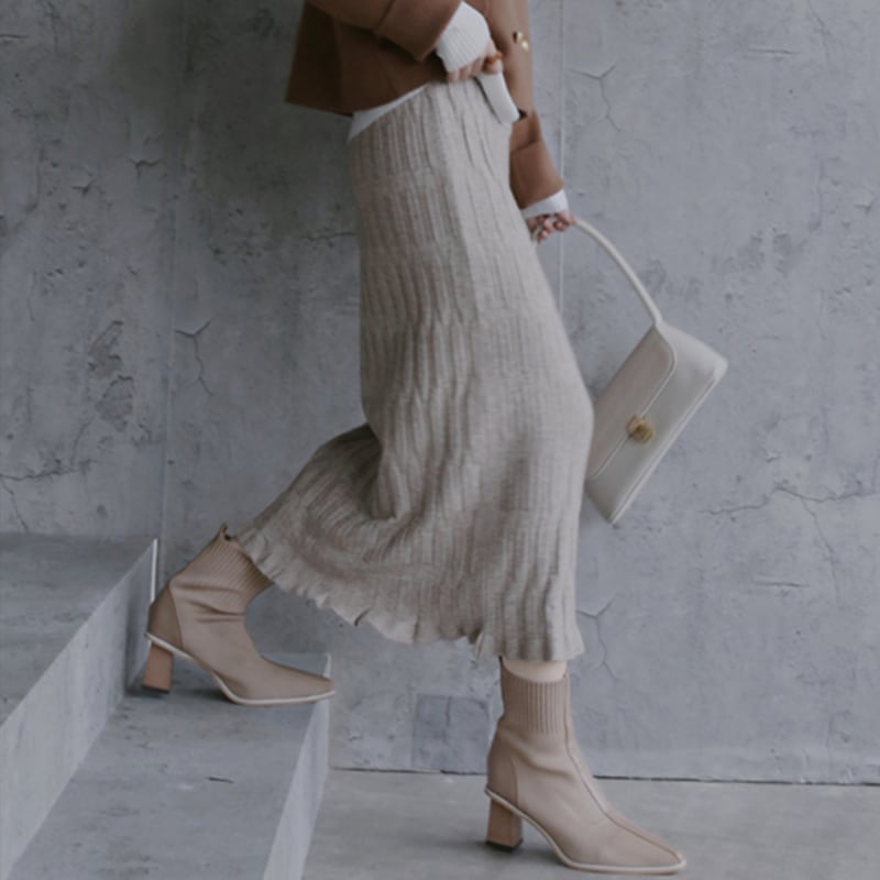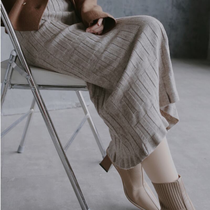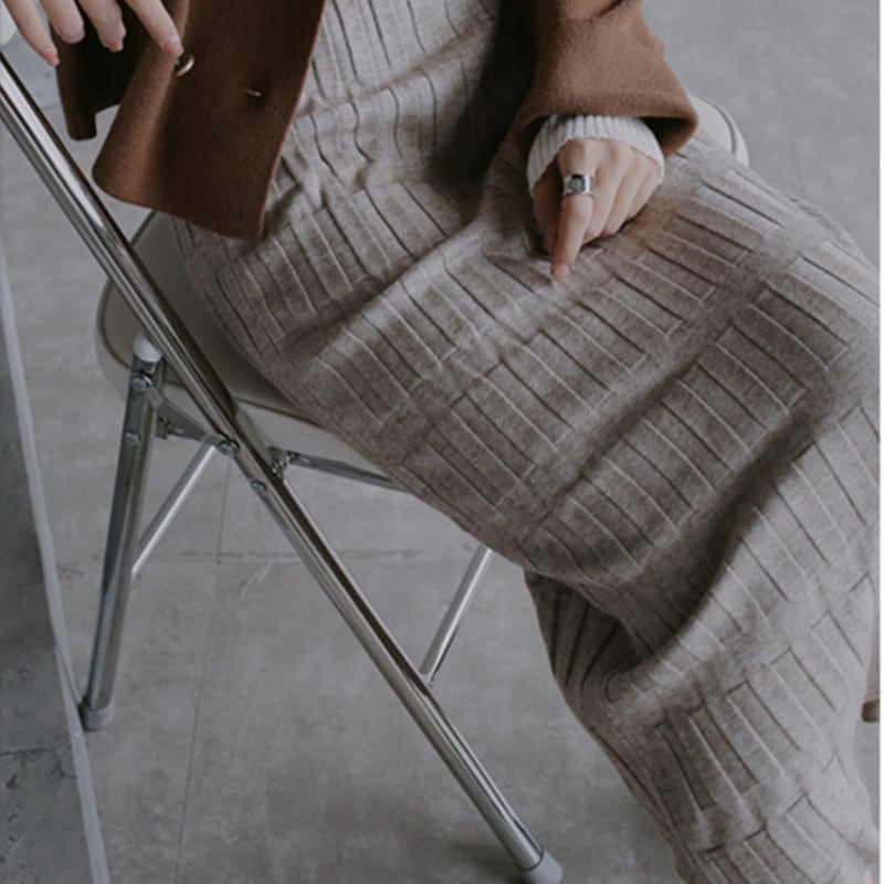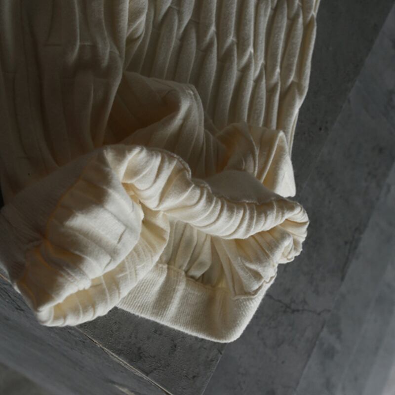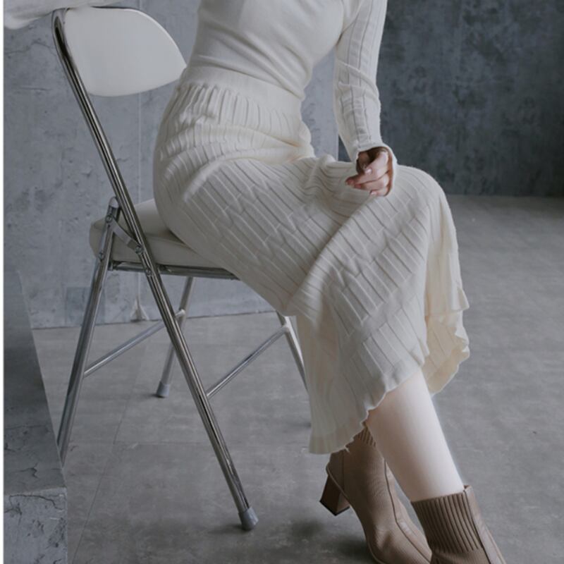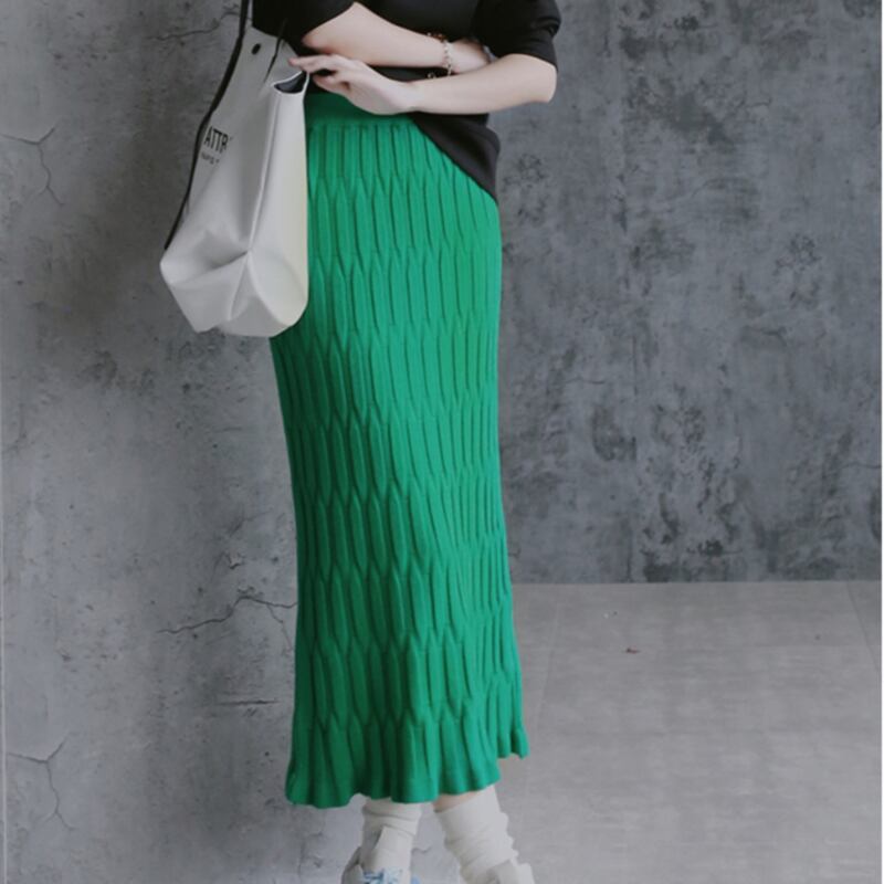 全体にあしらわれた特徴的な編地が目を惹くニットスカート。