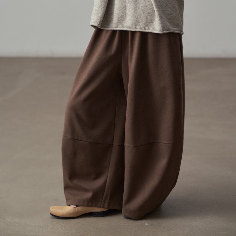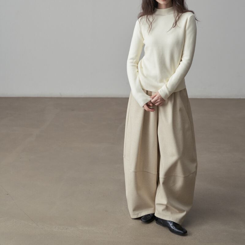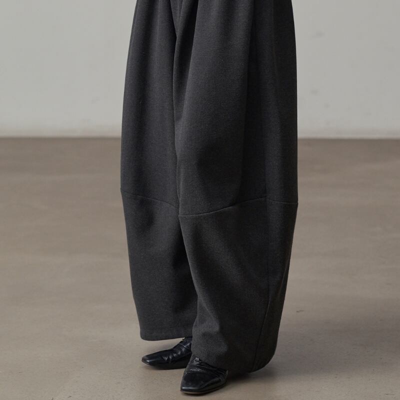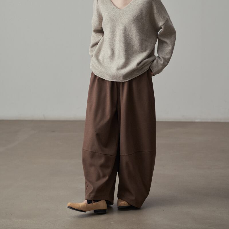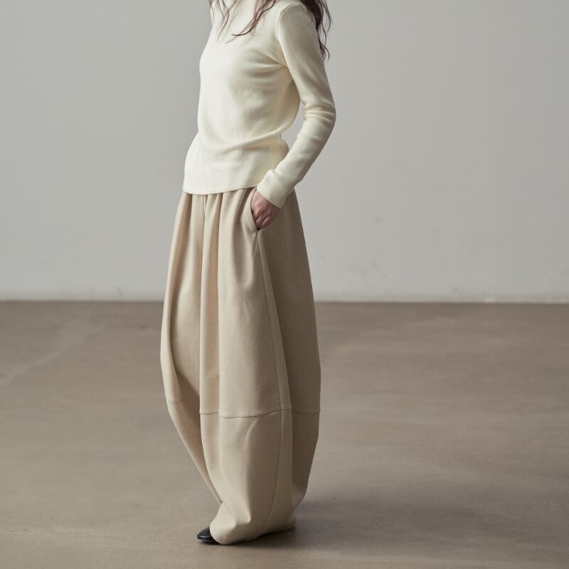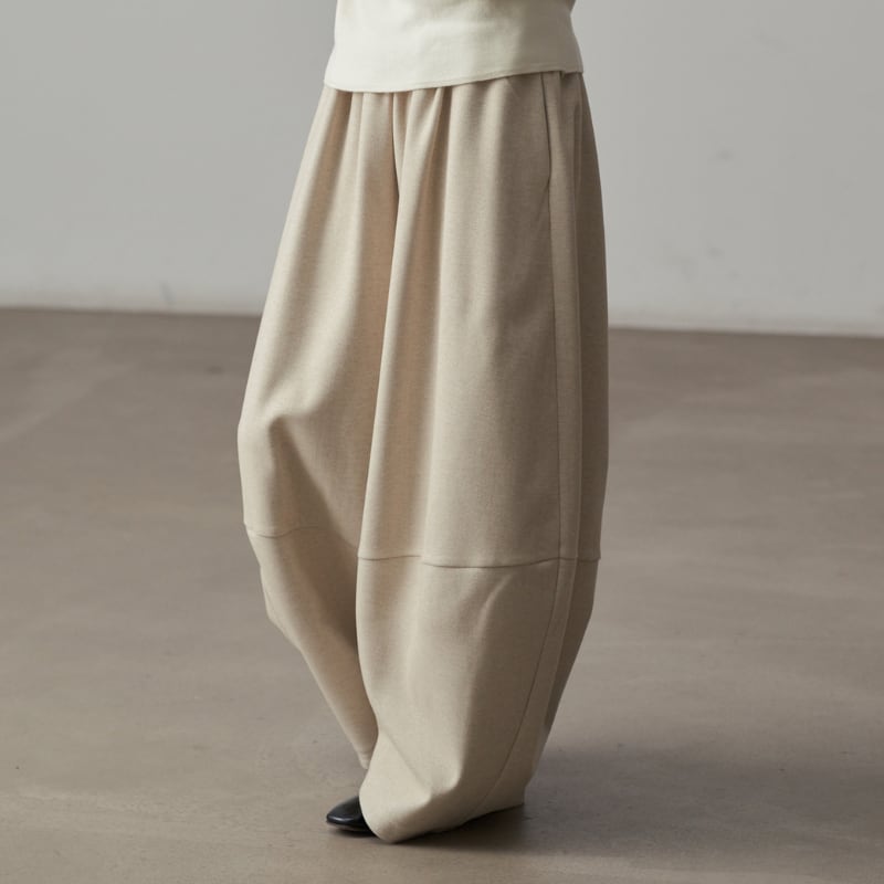バルーンシルエットが特徴的なフルレングスワイドパンツ。