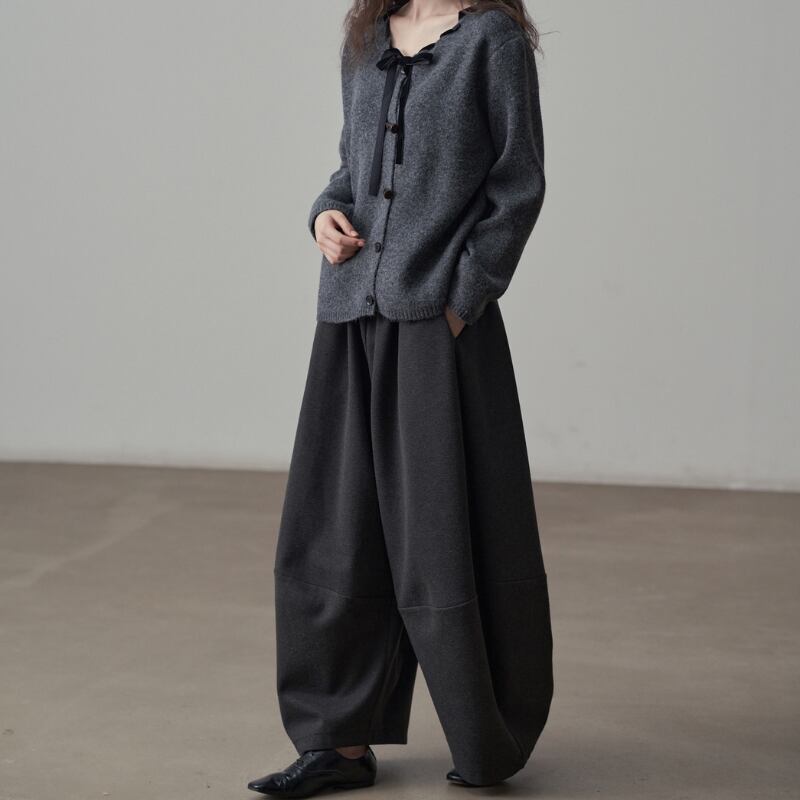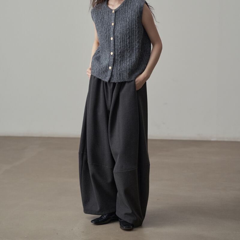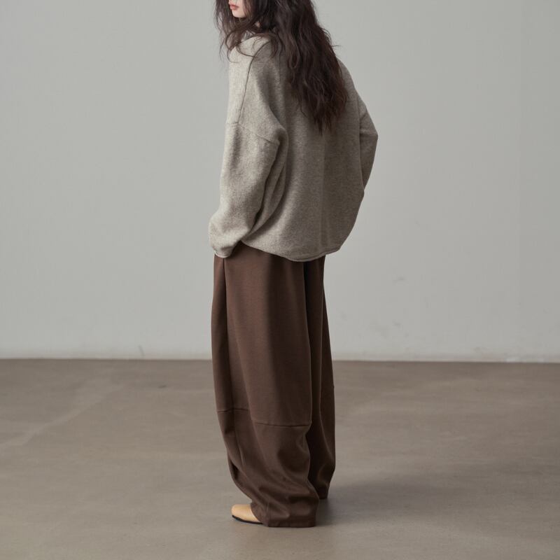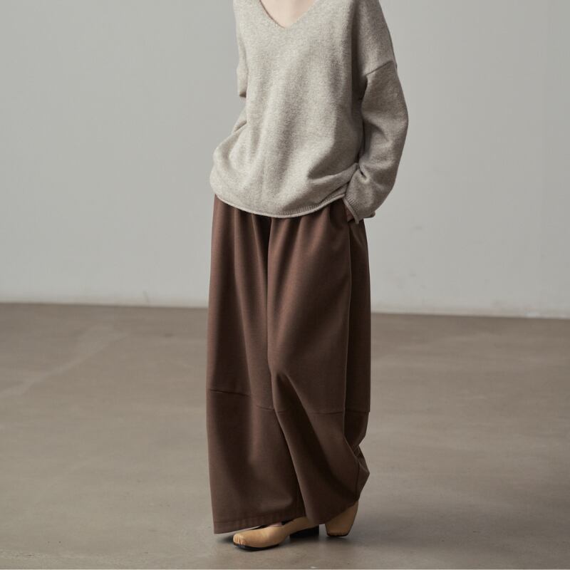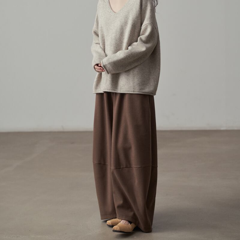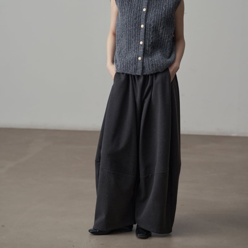 バルーンシルエットが特徴的なフルレングスワイドパンツ。