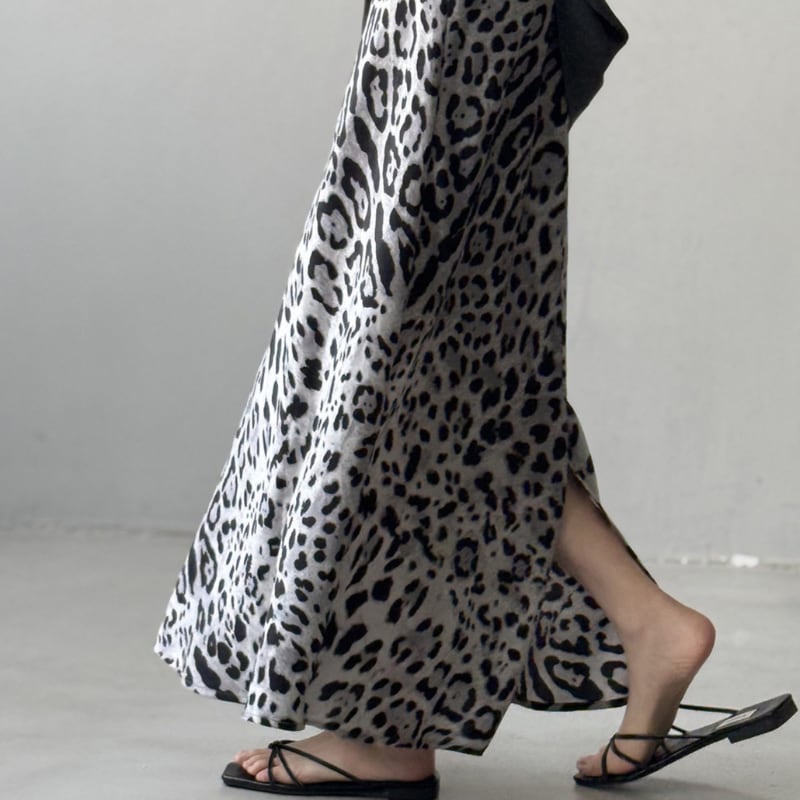 深めのスリットが、スタイリングにアクセントをプラスします。