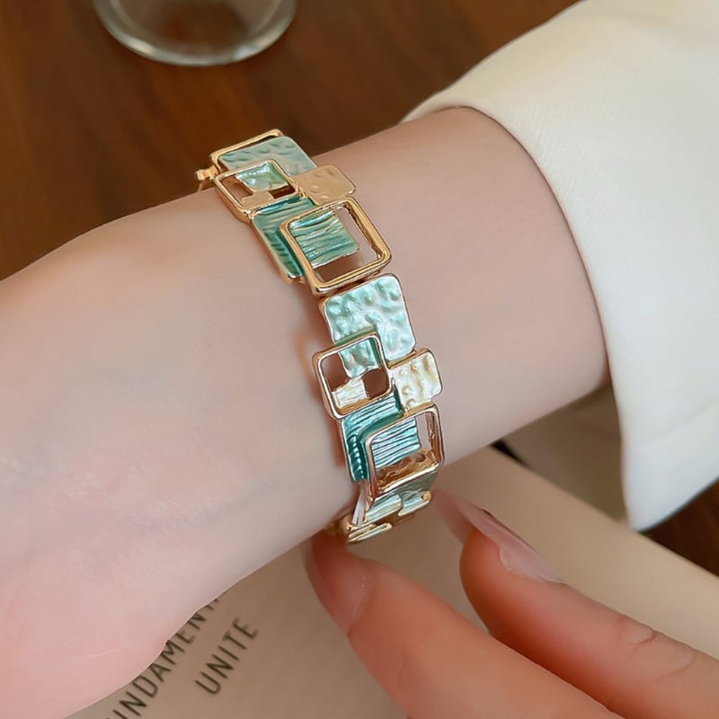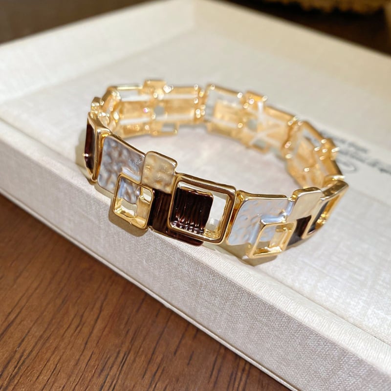 目を引く幾何学模様が特徴的なブレスレット。