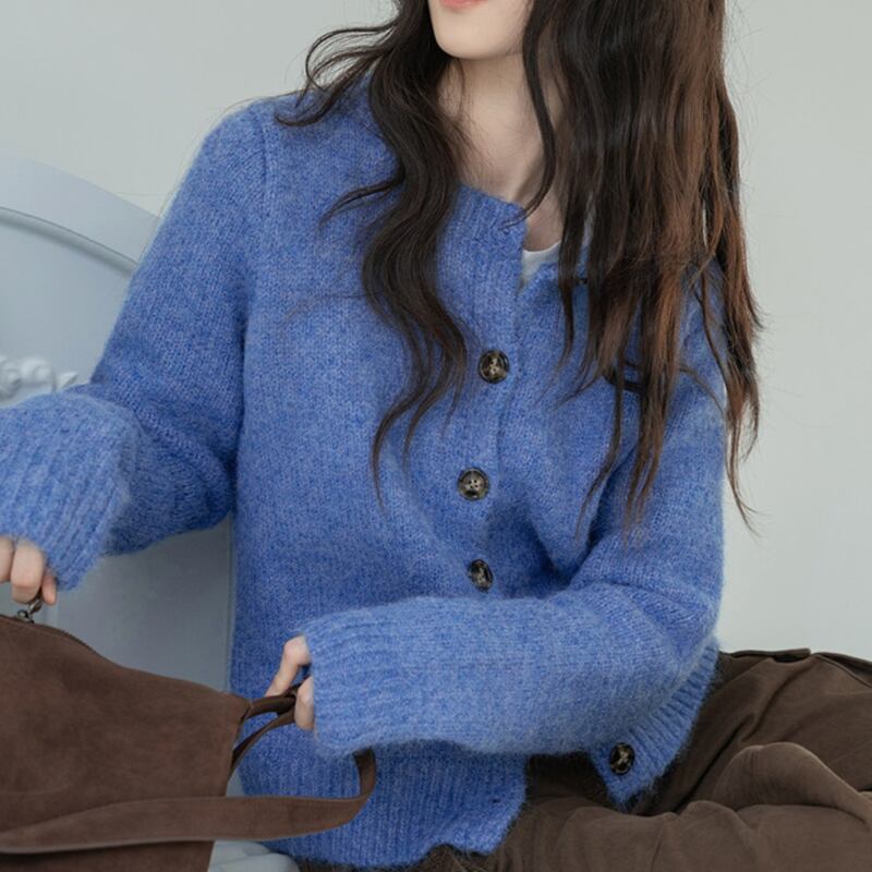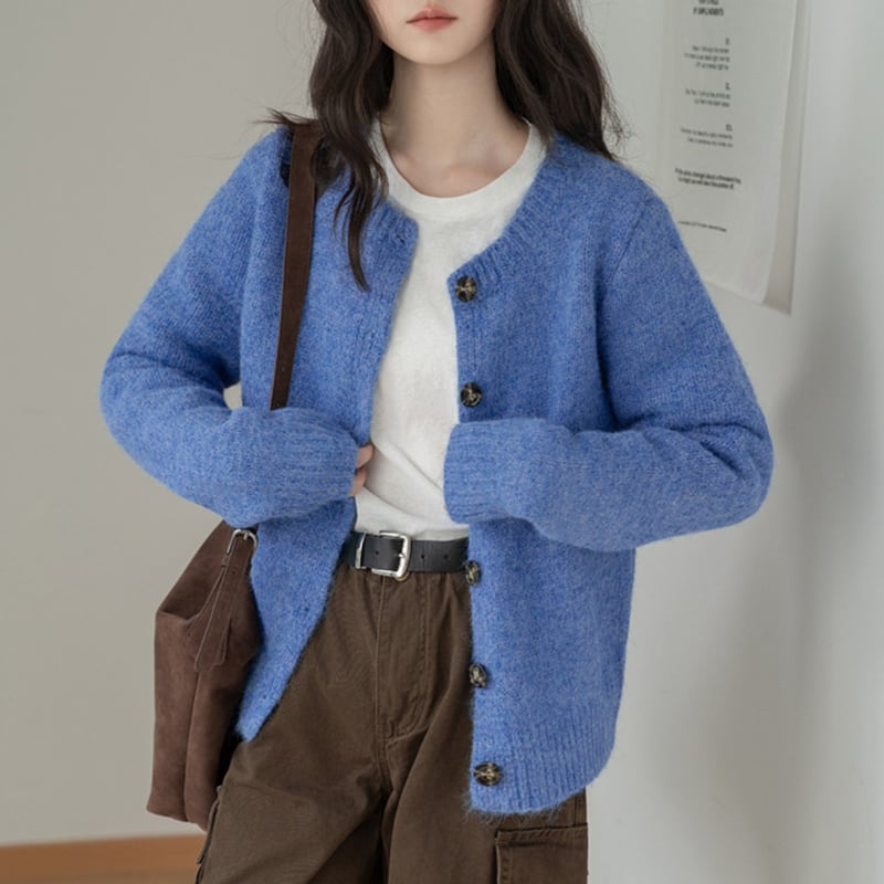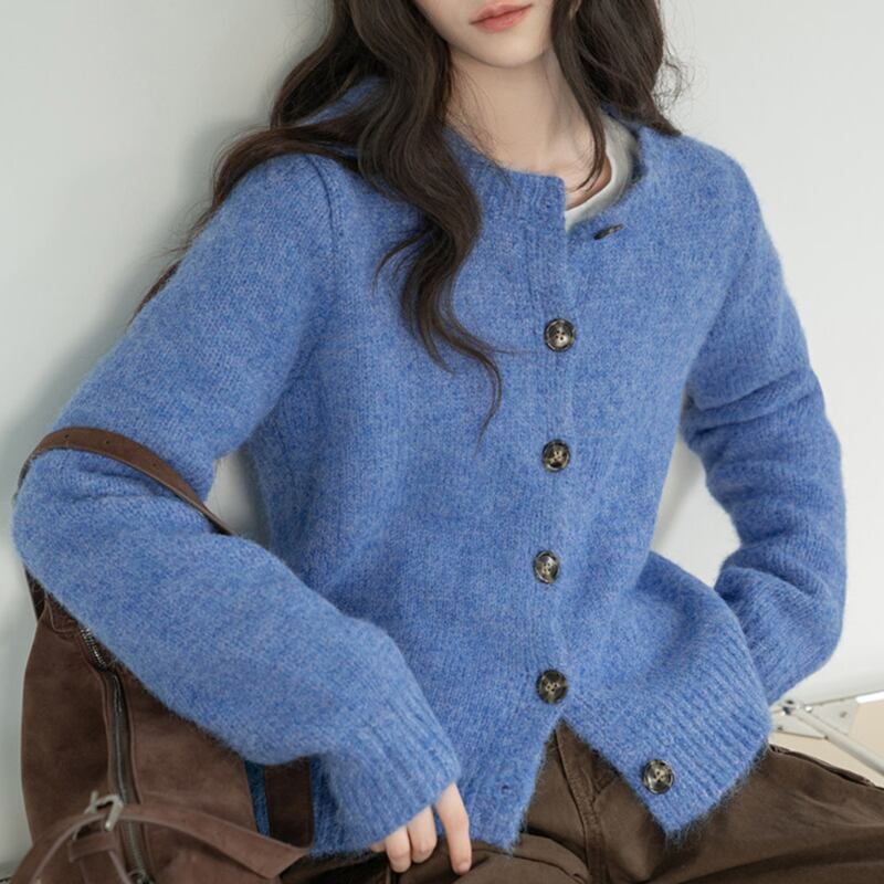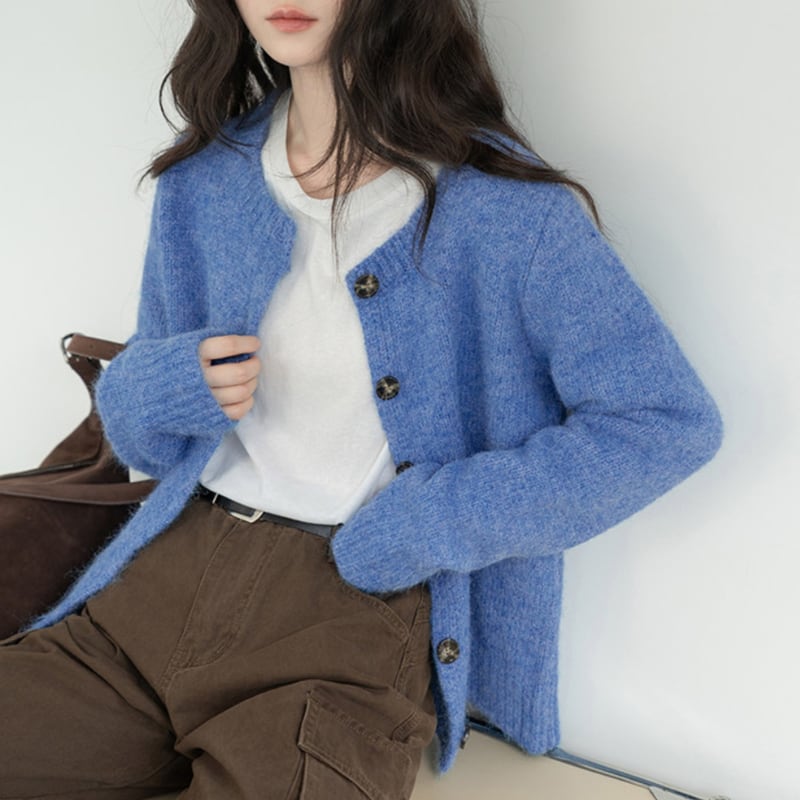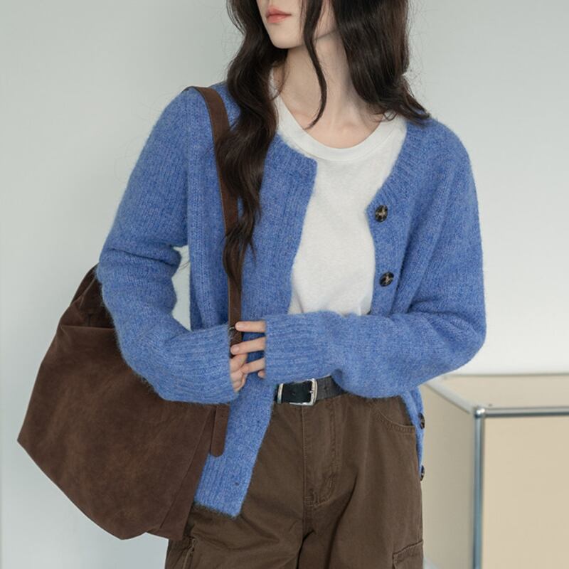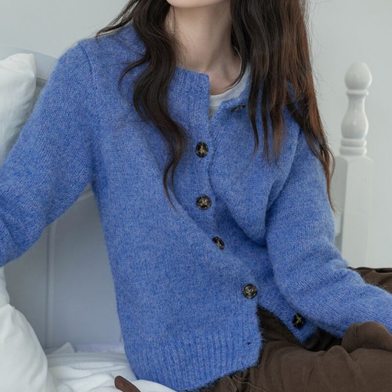 ボタンフロント クロップド丈 ニットカーディガン 10027