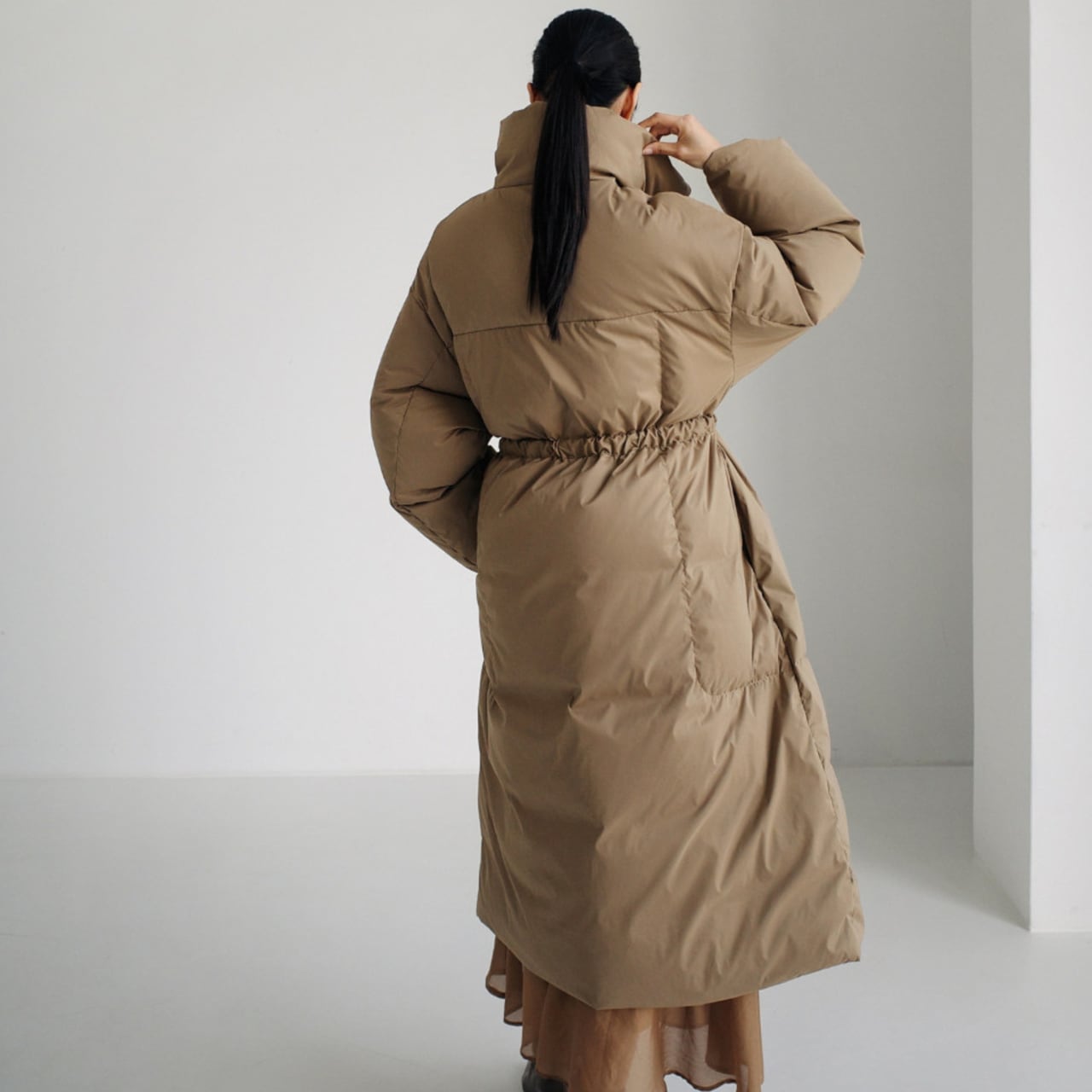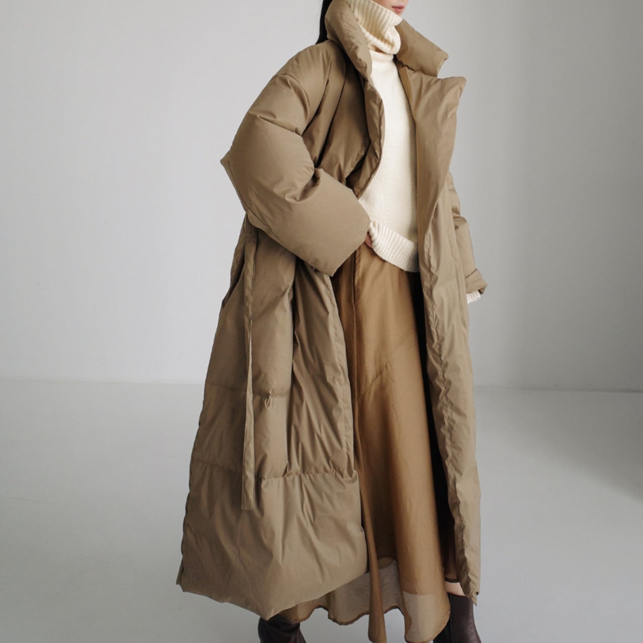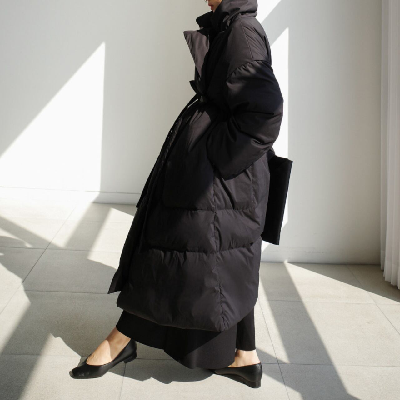 オーバーサイズシルエットがトレンド感を演出する中綿コート。