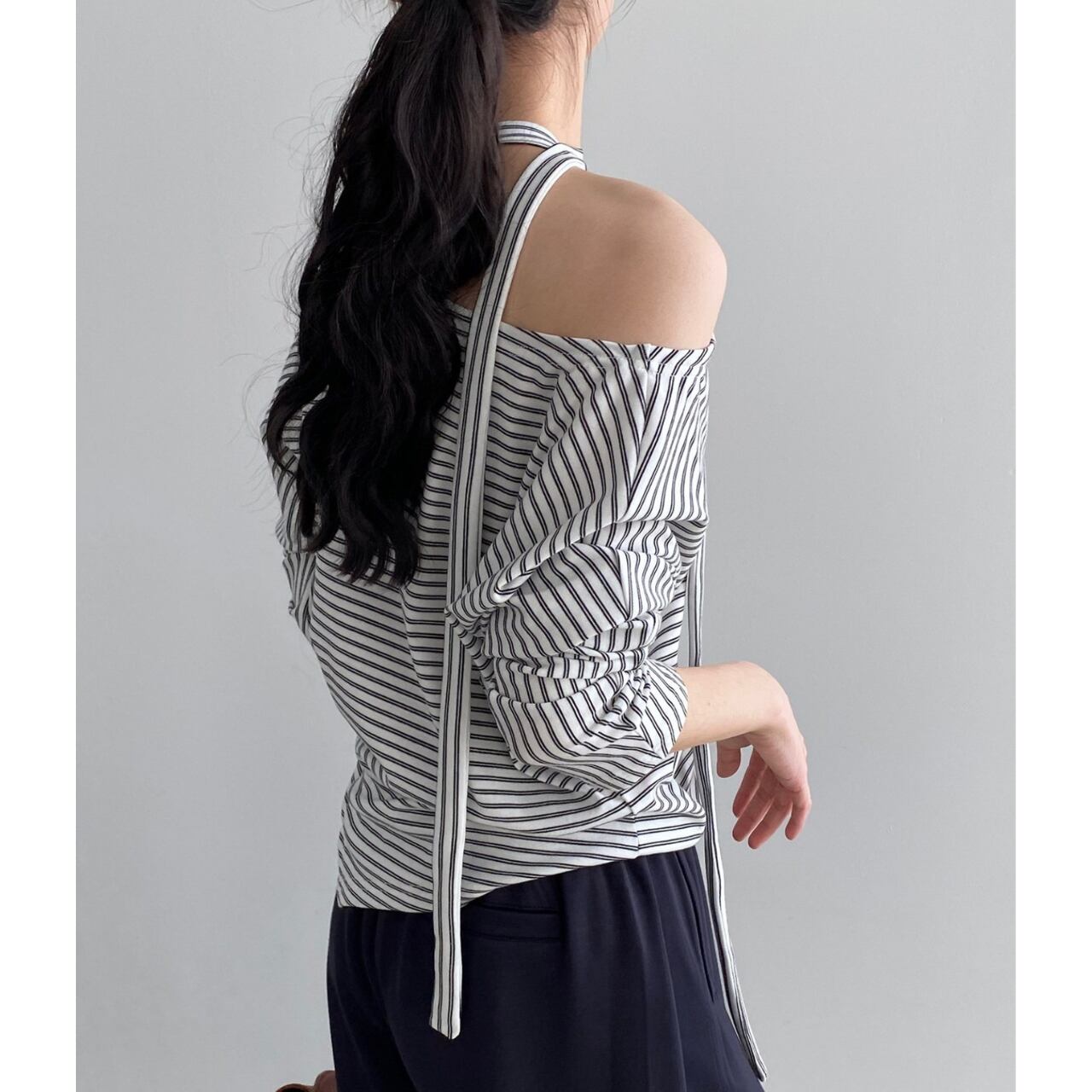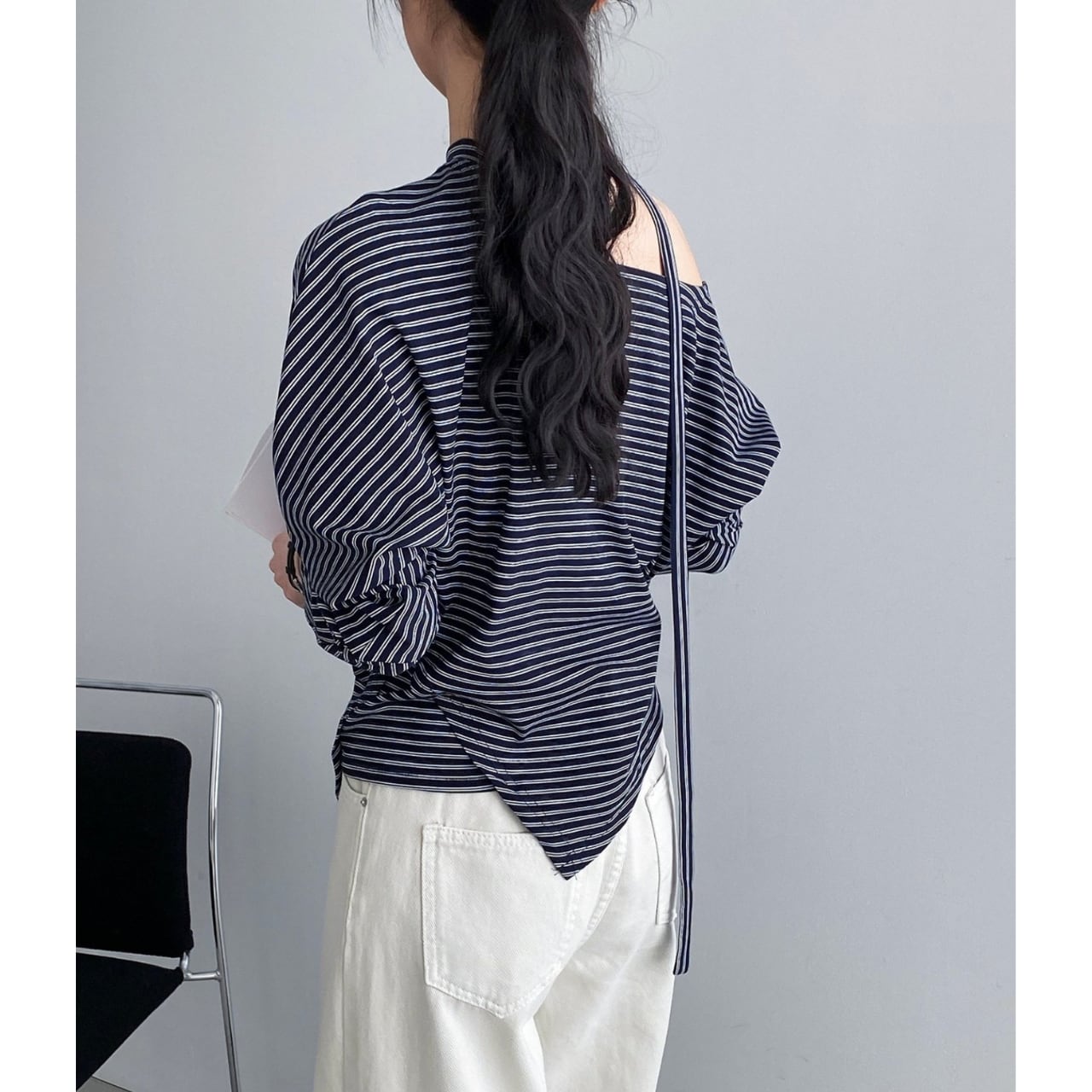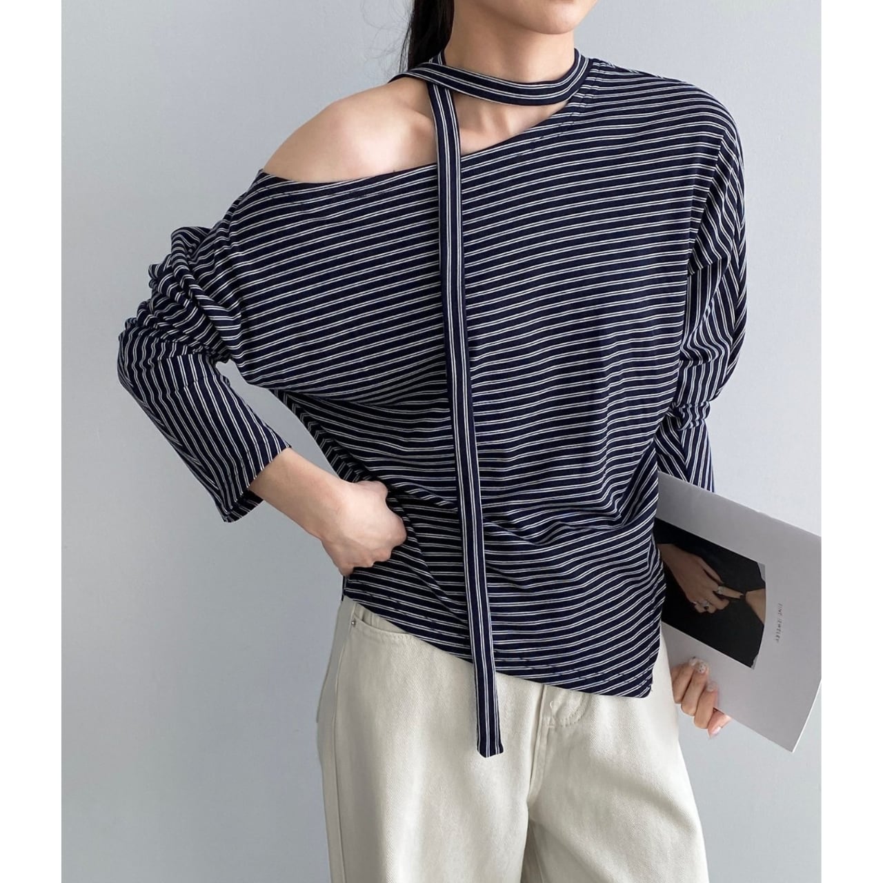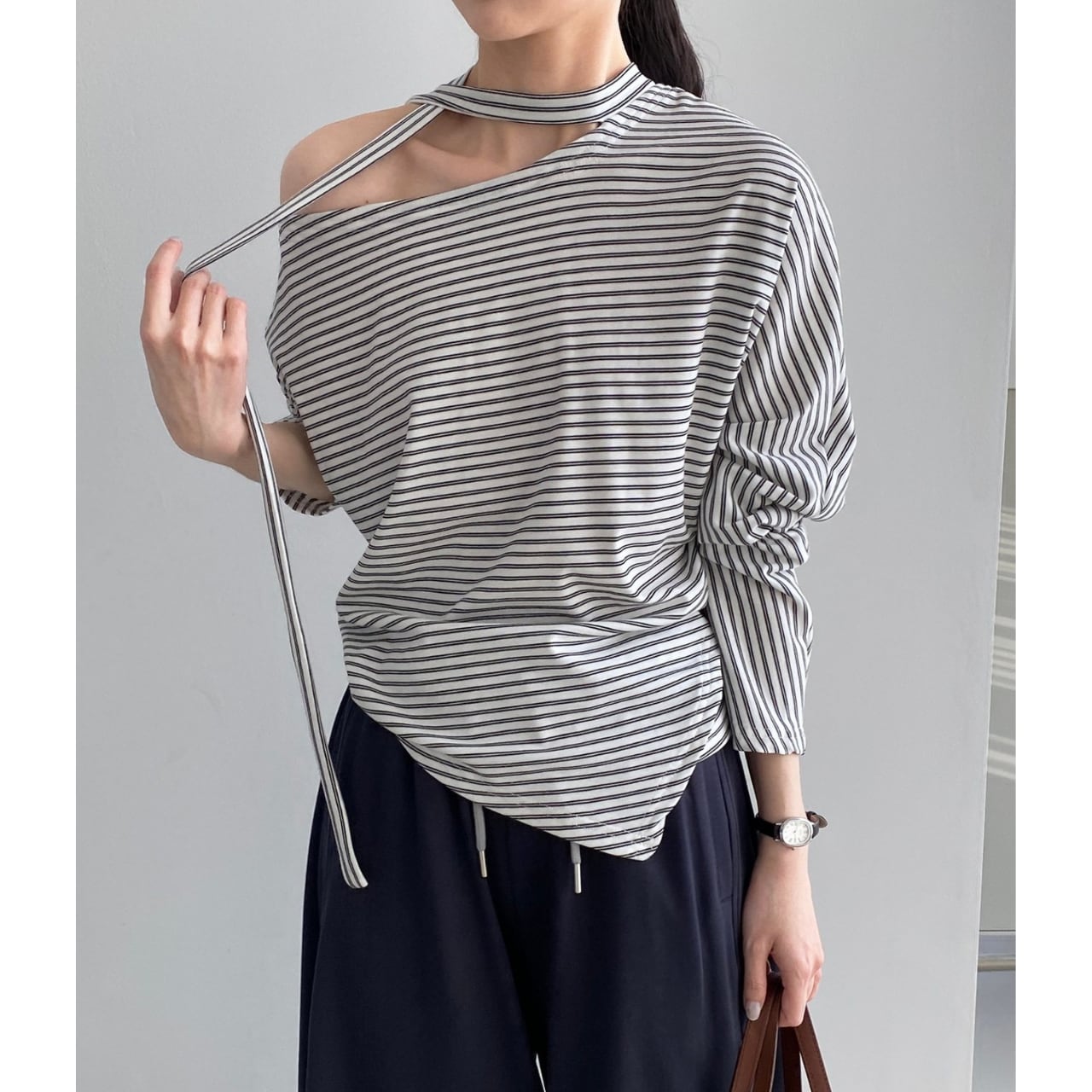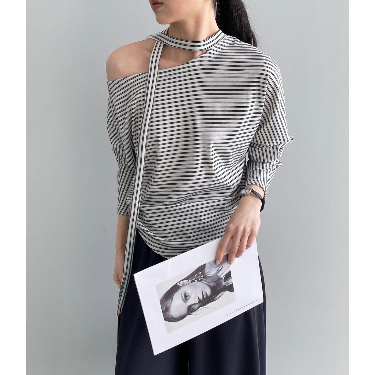 ストライプ アシンメトリー カットソー 2COL 10072