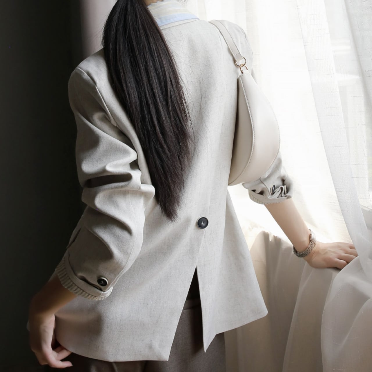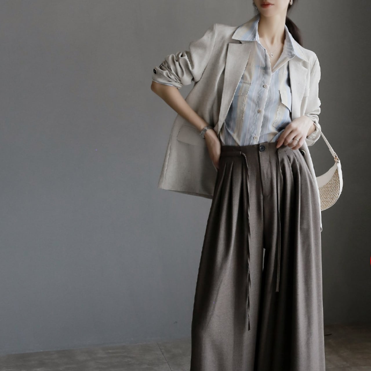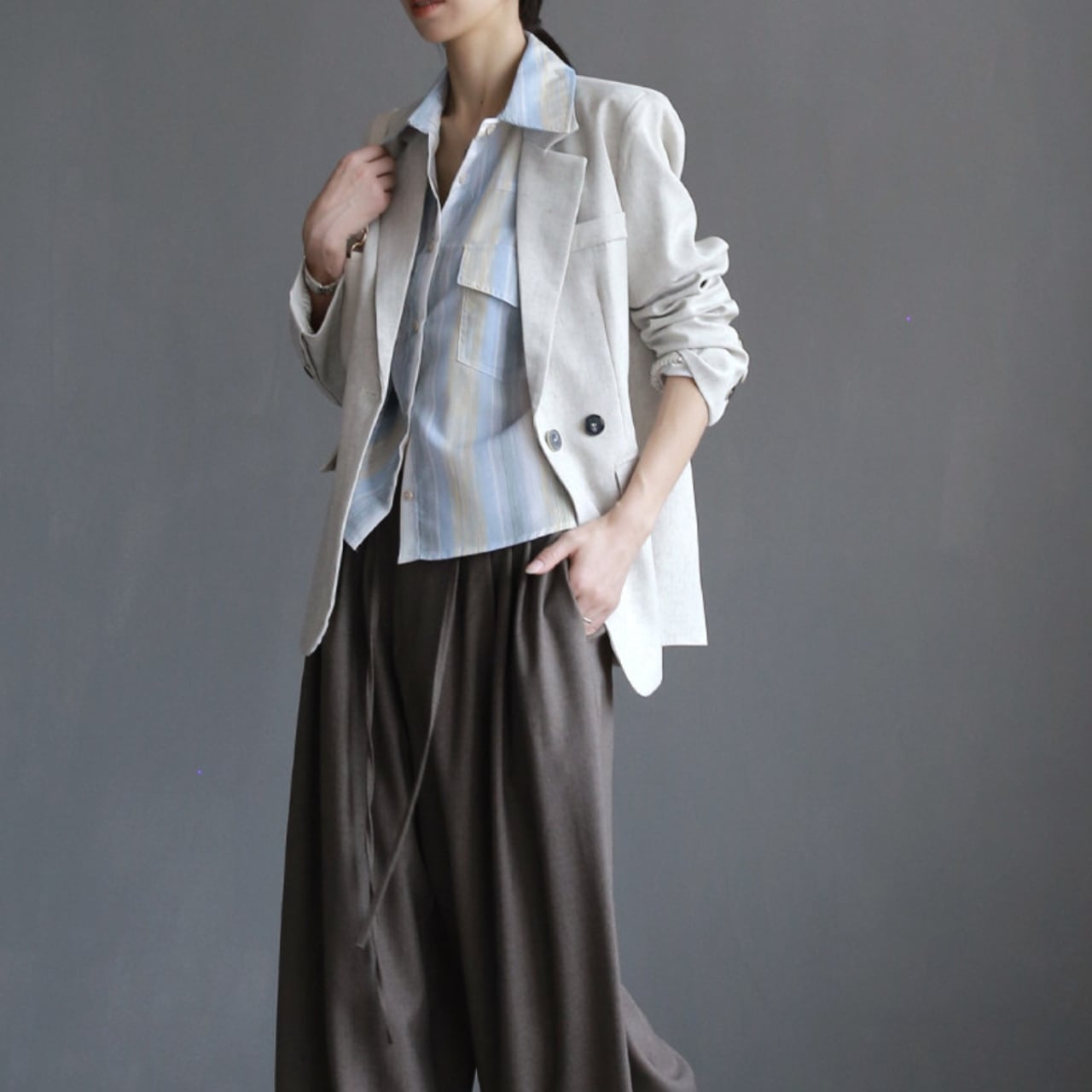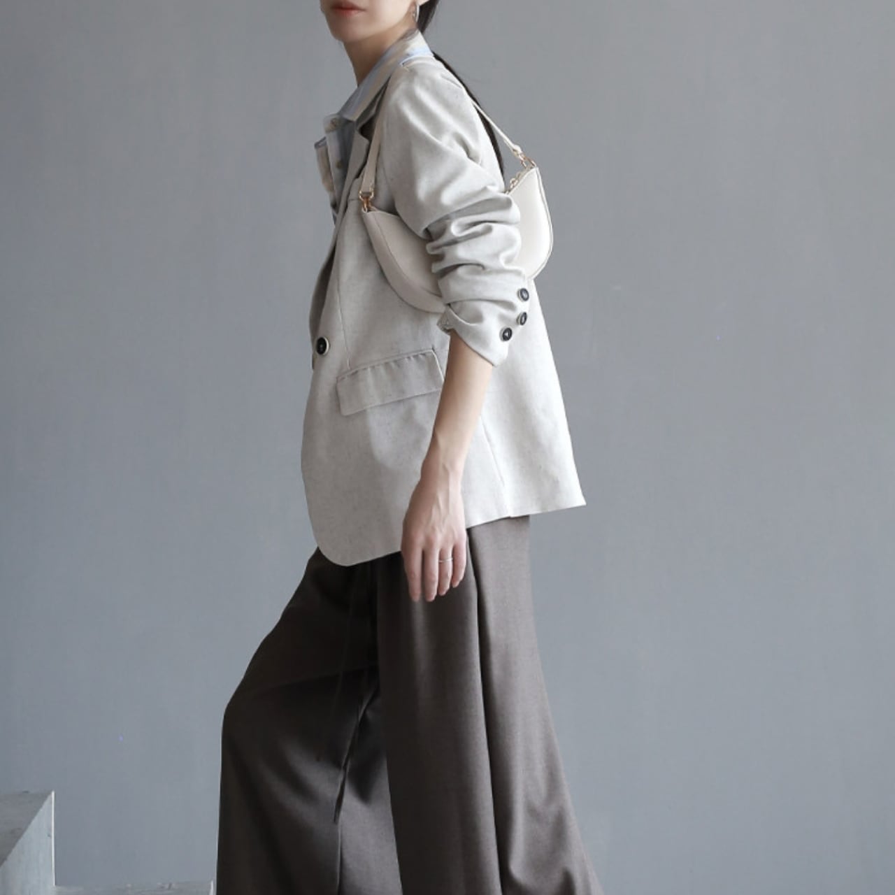 程よい丈感で、スカートにもパンツにも合わせやすく、オフィスからカジュアルまで幅広いシーンで活躍します。