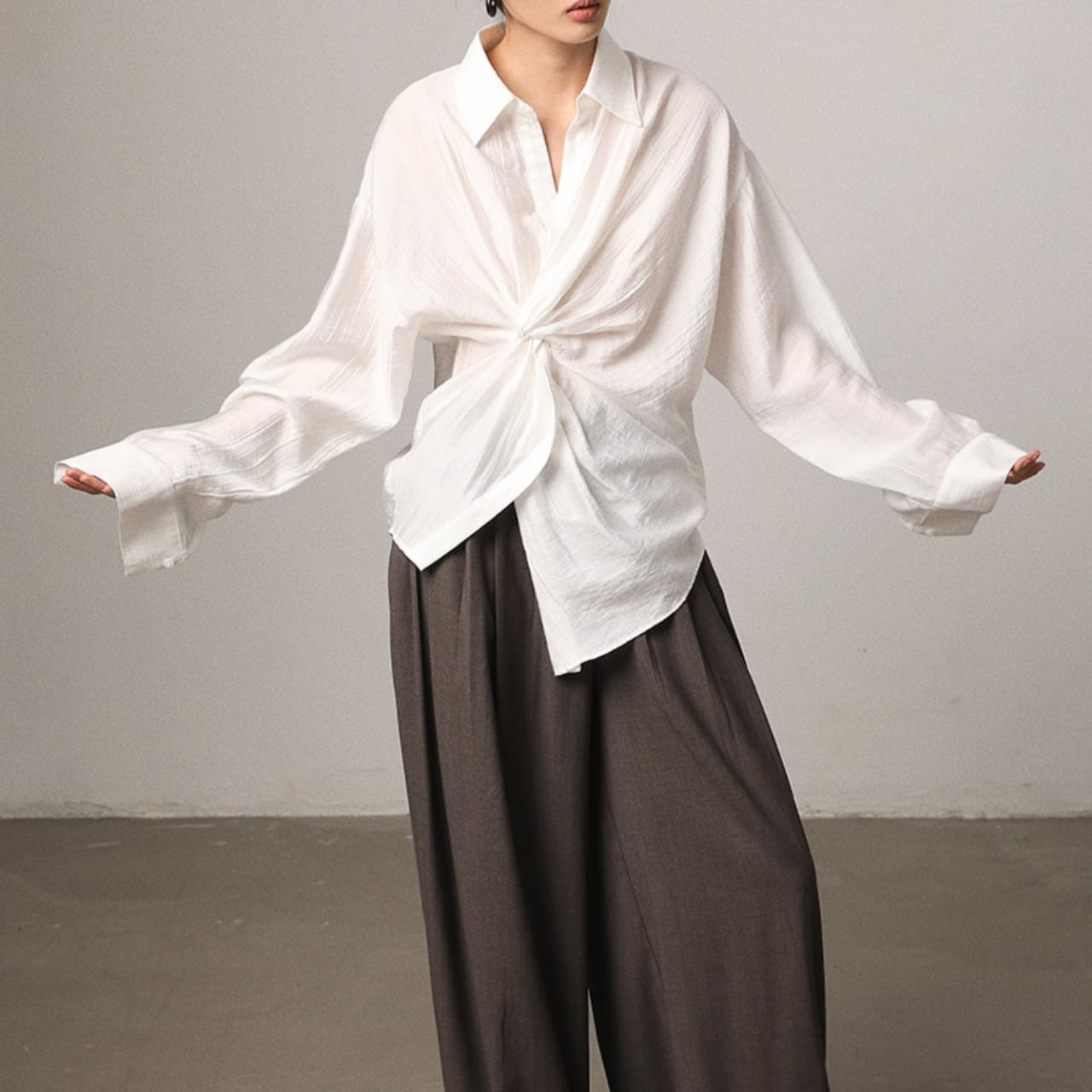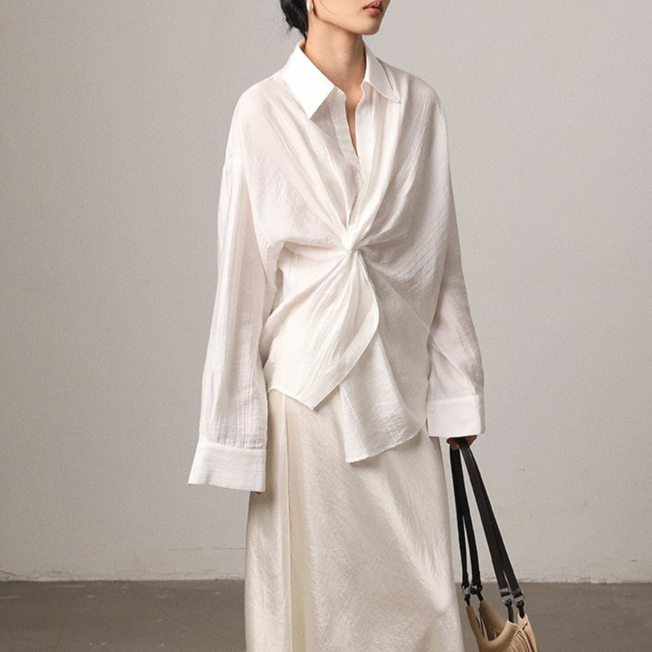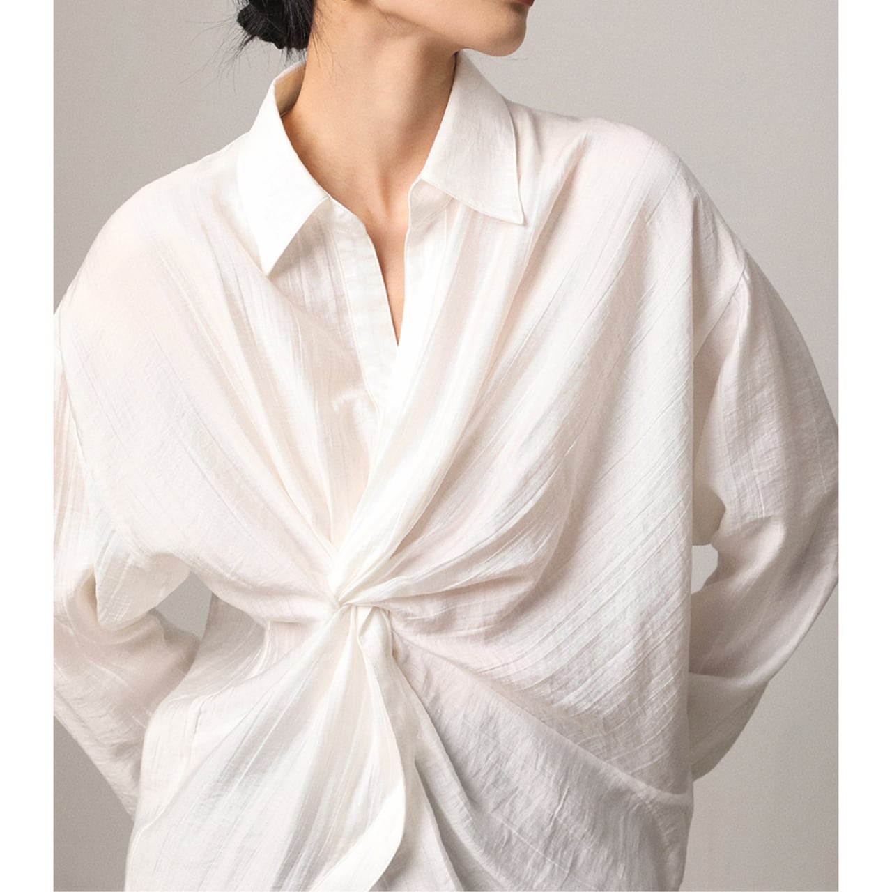ツイストがアクセントになったシャツ。