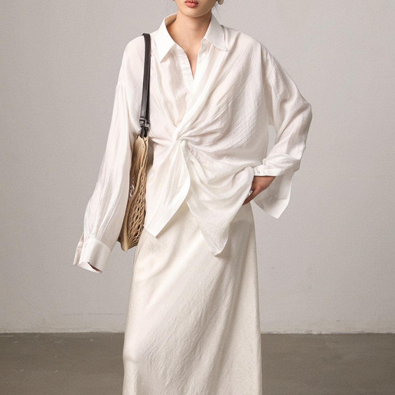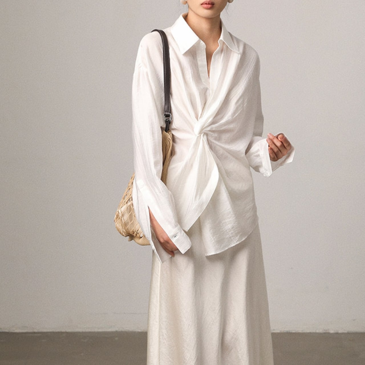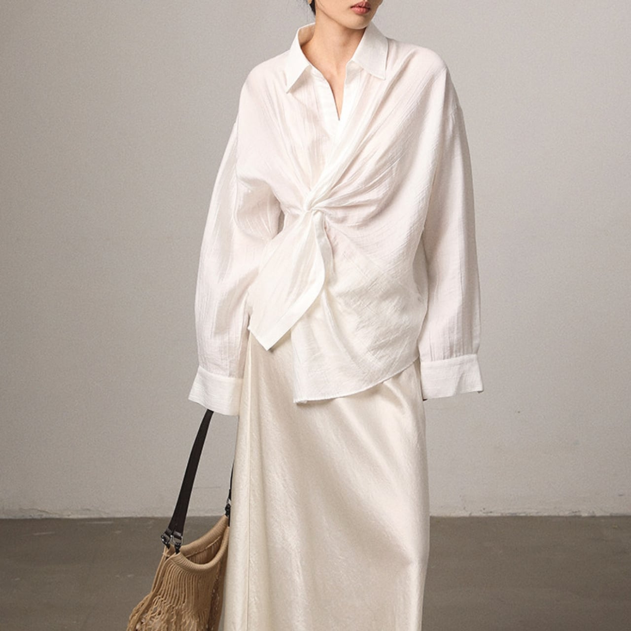 ツイストがアクセントになったシャツ。