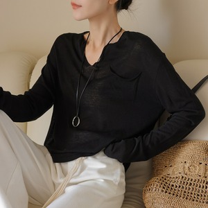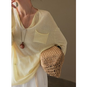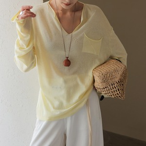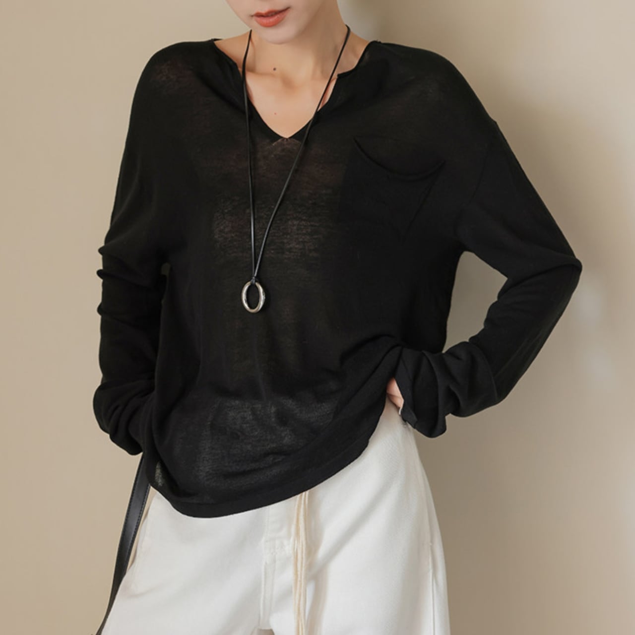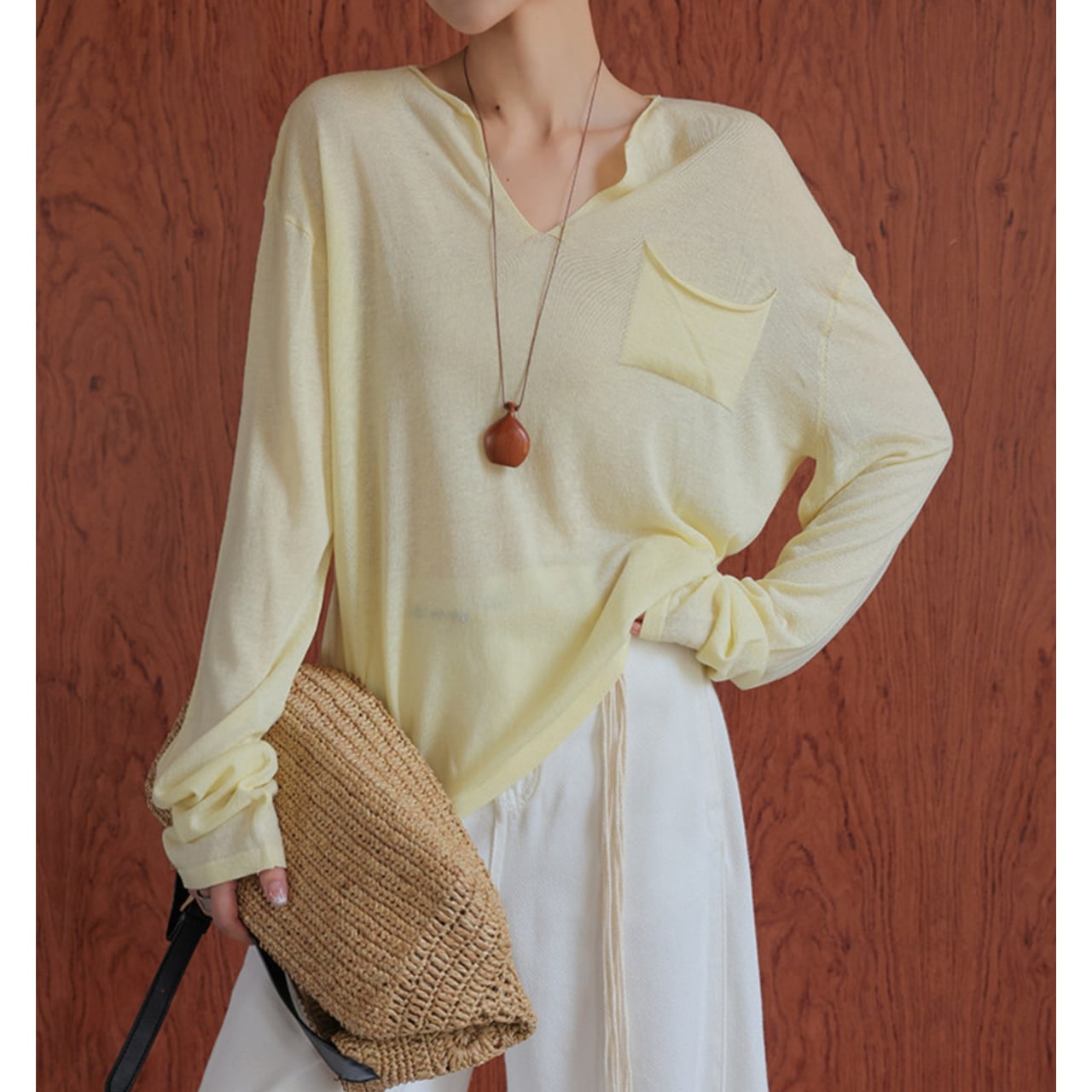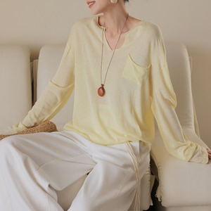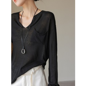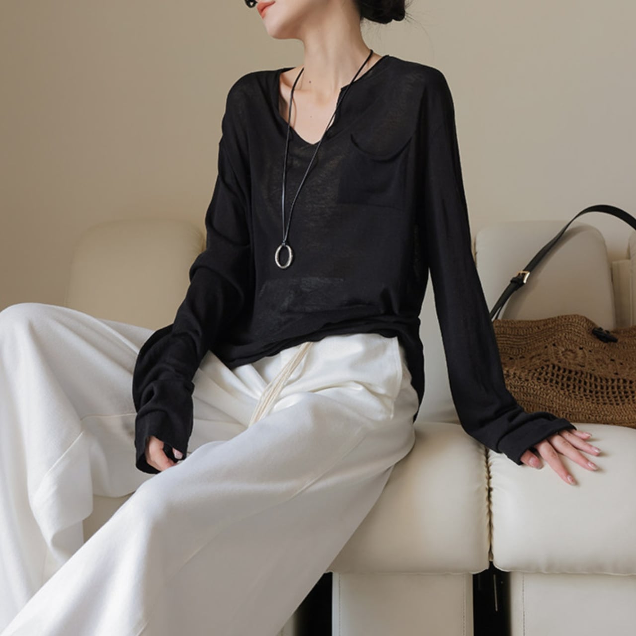 ゆったりとしたシルエットと、抜け感のあるVネックが頑張りすぎない大人の余裕を演出。